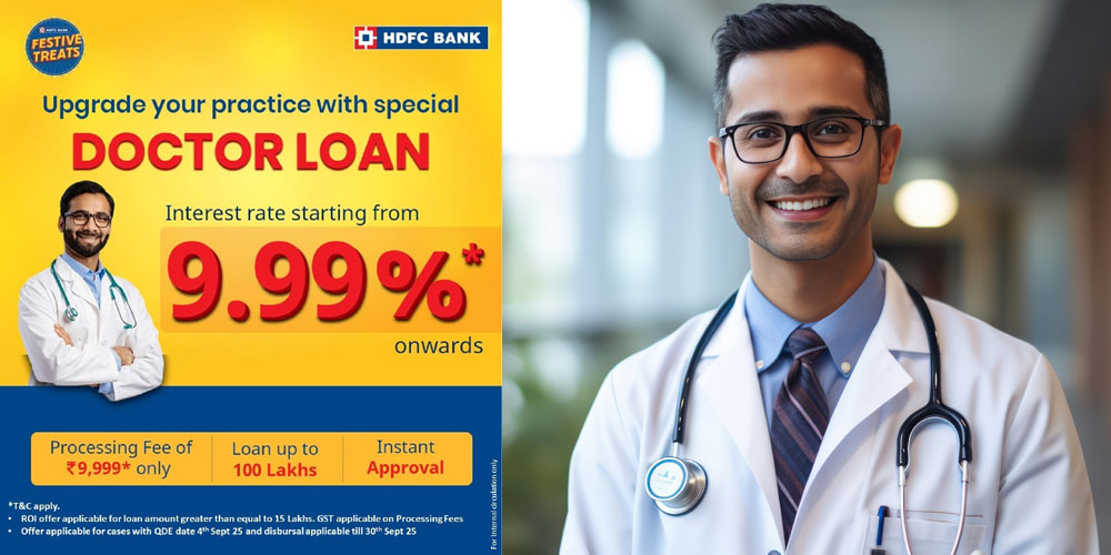 This festive season, we bring an exclusive Doctor Loan designed specially for MBBS and BDS qualified doctors. Whether you want to upgrade your practice, purchase modern medical equipment, expand your clinic, or set up a brand-new hospital/clinic—HDFC Bank’s Doctor Loan (through PortLoan) makes it possible.
